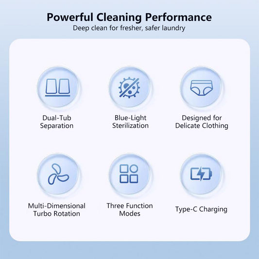 Dual-Cup Separation Mini Wireless Washing Machine Blue-Light Sterilization Powerful Cleaning
