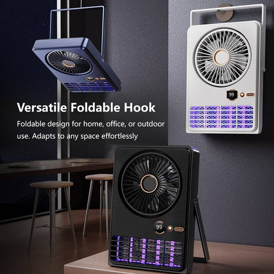 2-in-1 Fan and Mosquito Zapper Portable Rechargeable Plug-in 5-Level Cooling 2000V Bug Zapper Type-C Charging