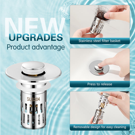 2 In 1 Bathroom Sink Stopper Prevent Clogging Easy Installation Easy to Clean Corrosion Resistance