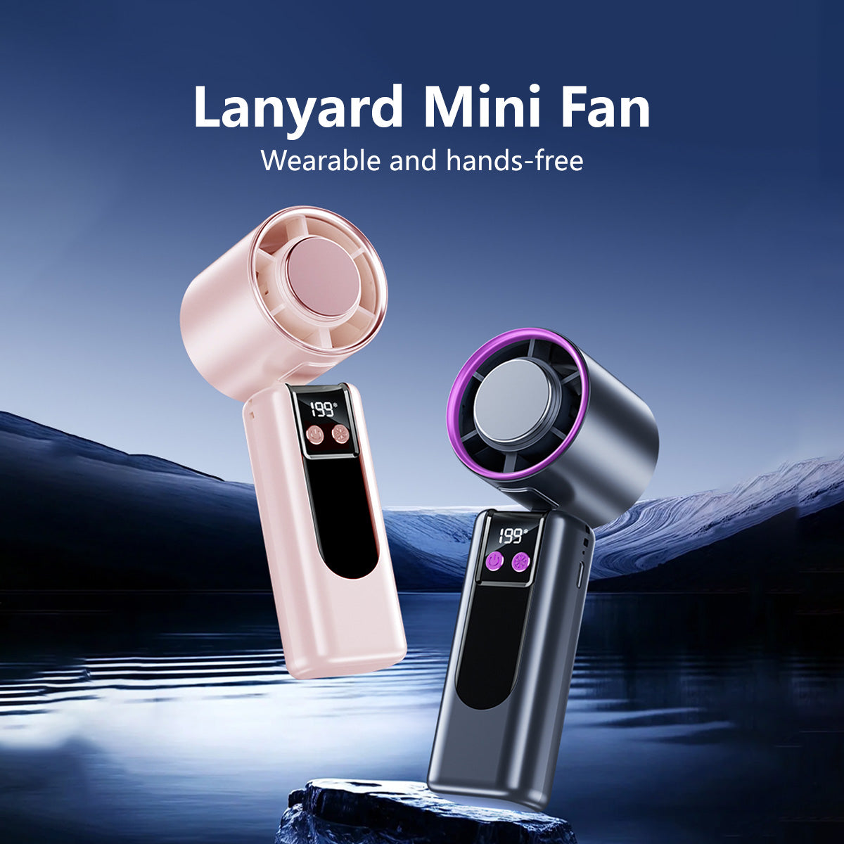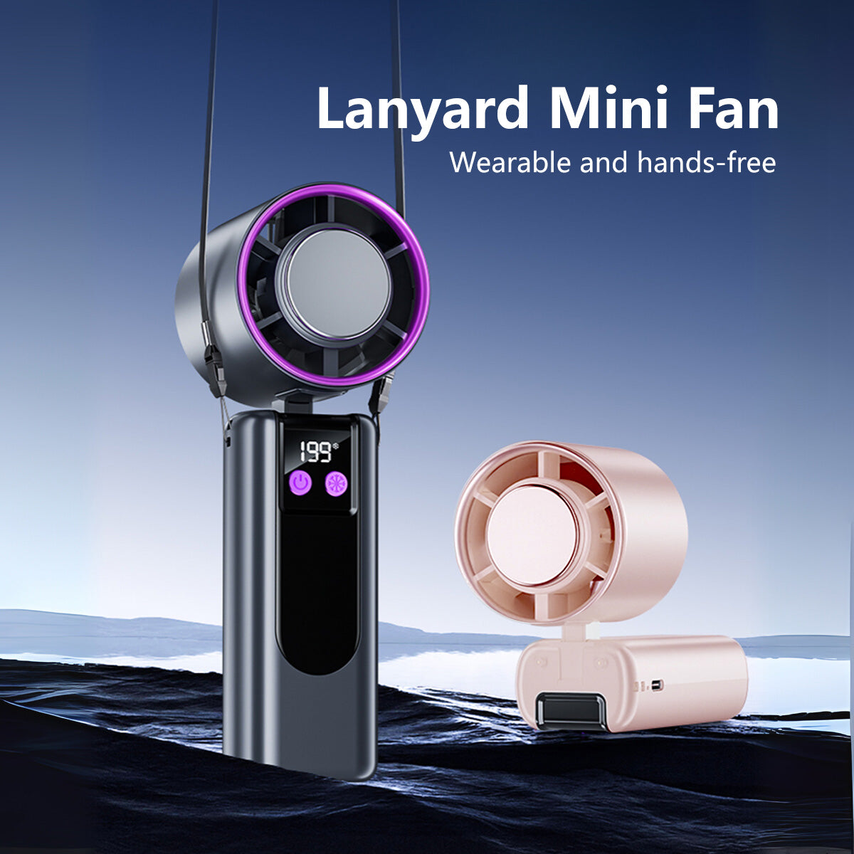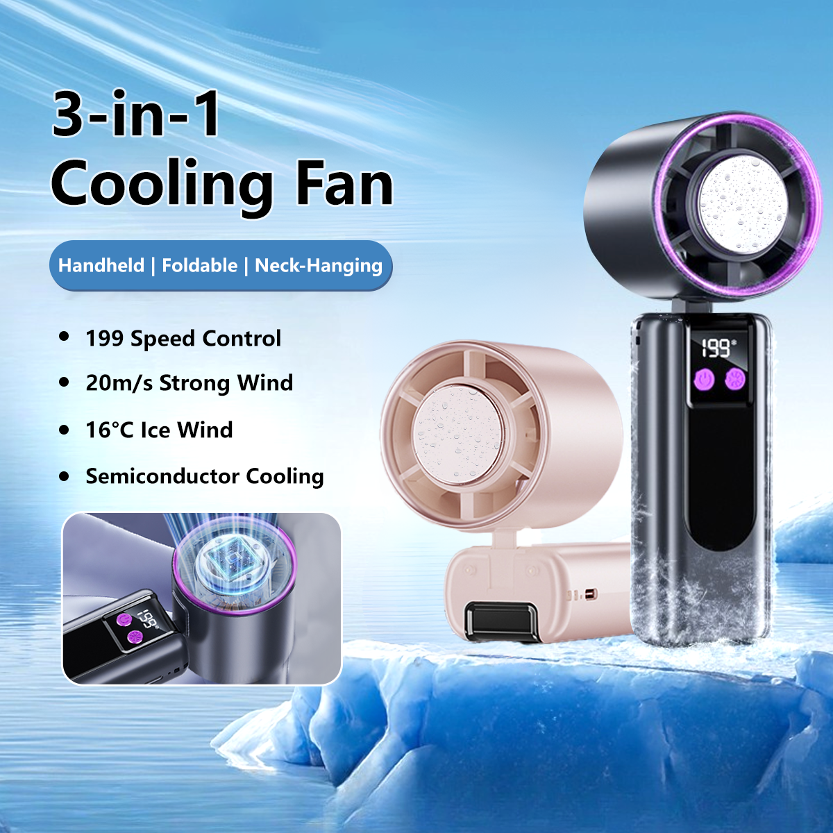 3-in-1 Cooling Fan 199-Level Cooling Portable Handheld Desktop USB Rechargeable Lanyard Easy Carry
