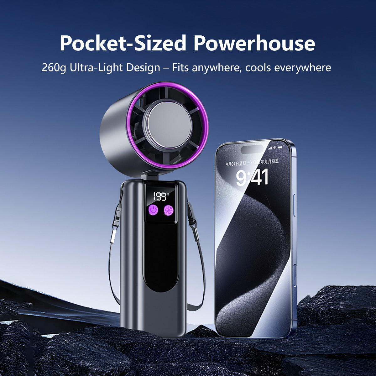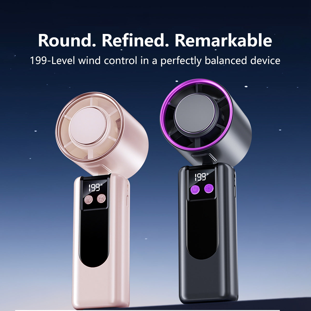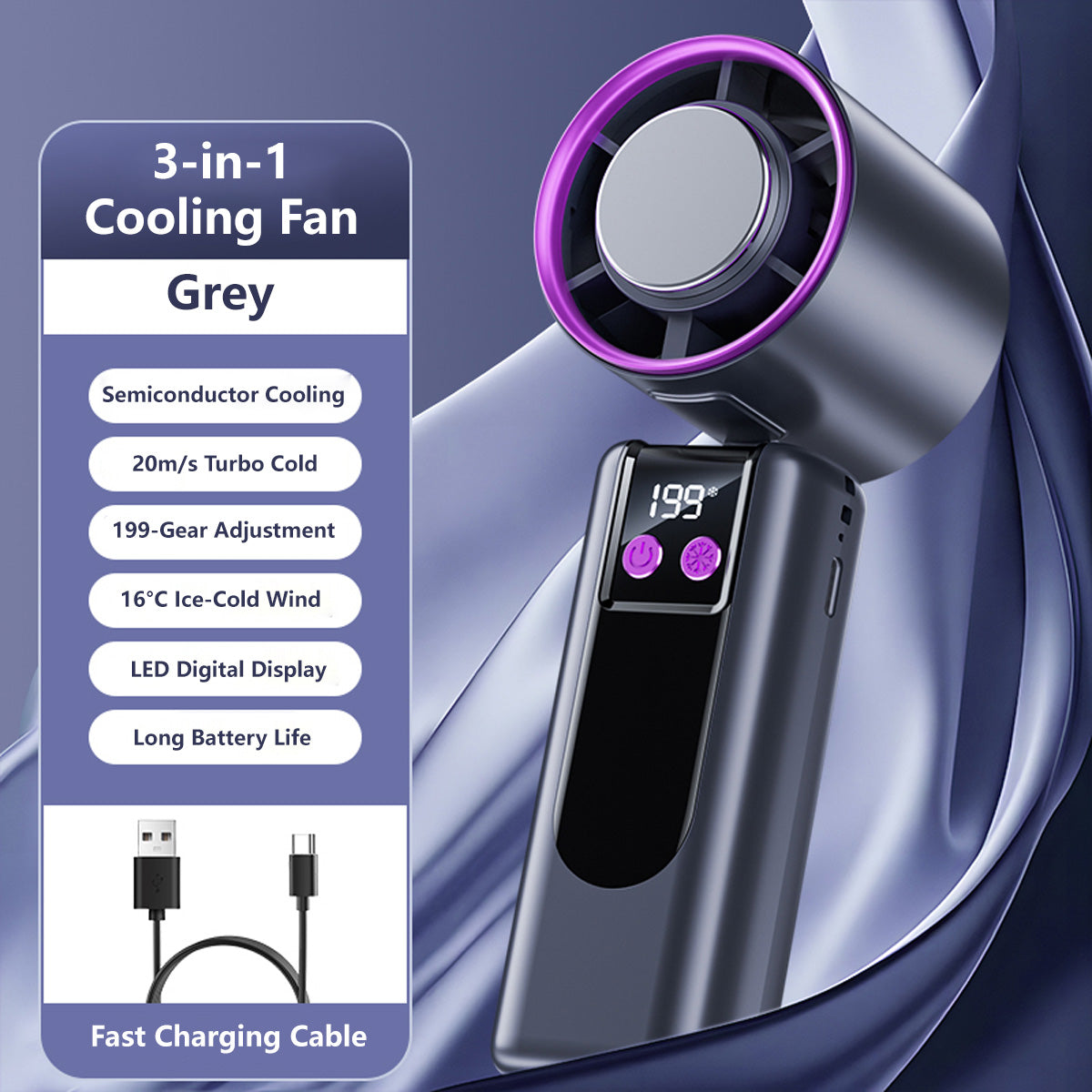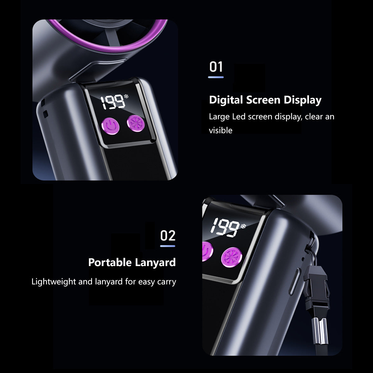 3-in-1 Cooling Fan 199-Level Cooling Portable Handheld Desktop USB Rechargeable Lanyard Easy Carry