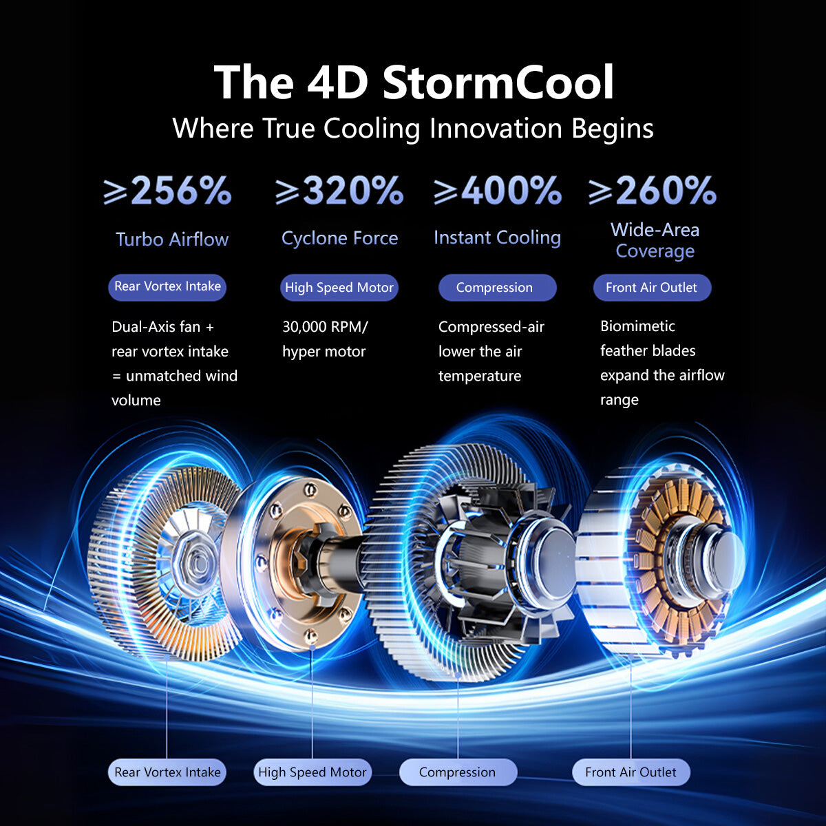 🌀 Dual Cooling System: Powerful wind + ice compress function