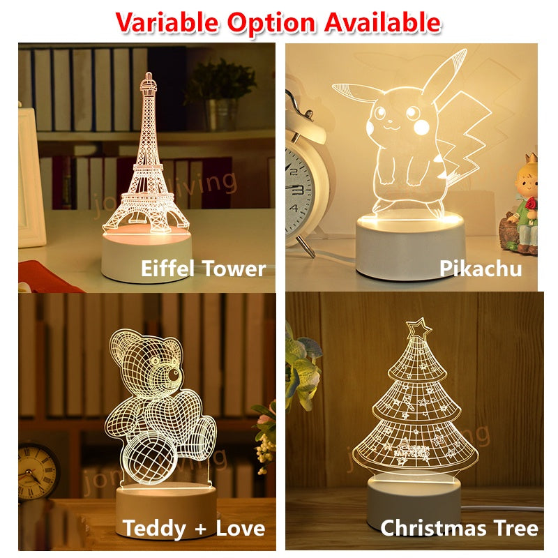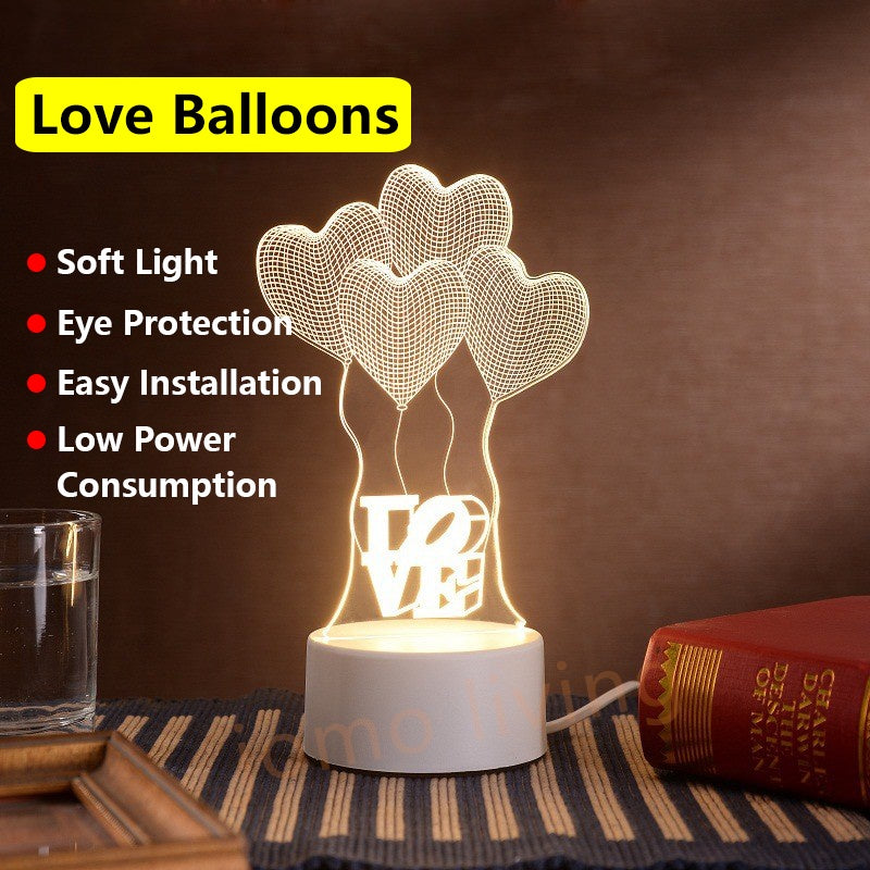 3D LED Light Gift Warm Light Bedroom Table Lamp USB Light Birthday Gift Idea Vday Present