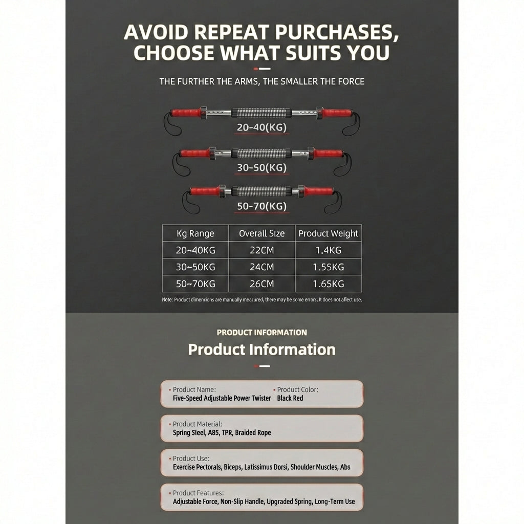 Adjustable Arm Trainer 5 Level Resistance Twister Bar Chest Bar Home Gym 可调节臂力器