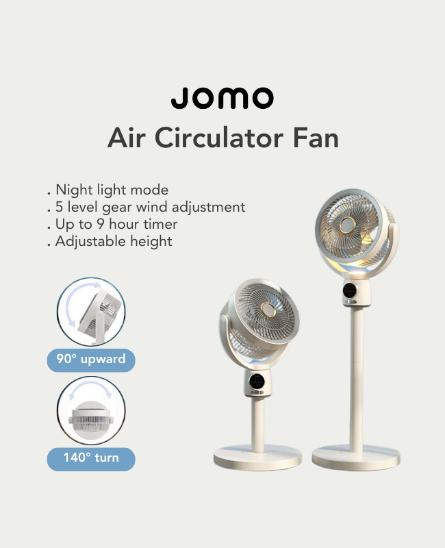 Stay cool and comfortable with our Air Circulation Fan. With adjustable height, 5 gear wind levels, and 3 timer settings, this fan provides optimal airflow tailored to your needs. Plus, it features convenient Type-C charging and built-in light, making it the perfect companion for any space.