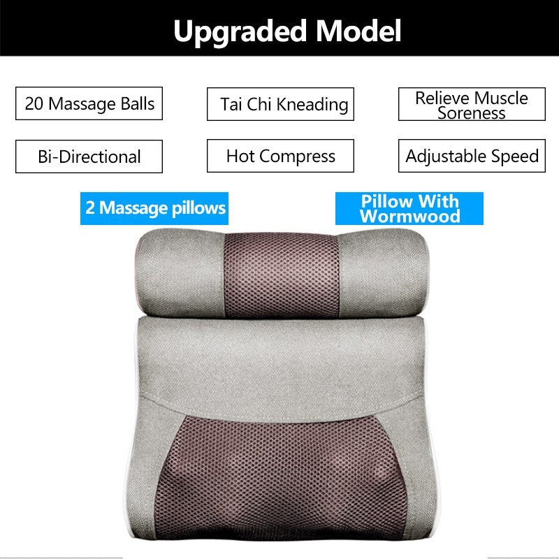 Double Combination Wormwood Electrical Massage Pillow Shoulder Neck Massager