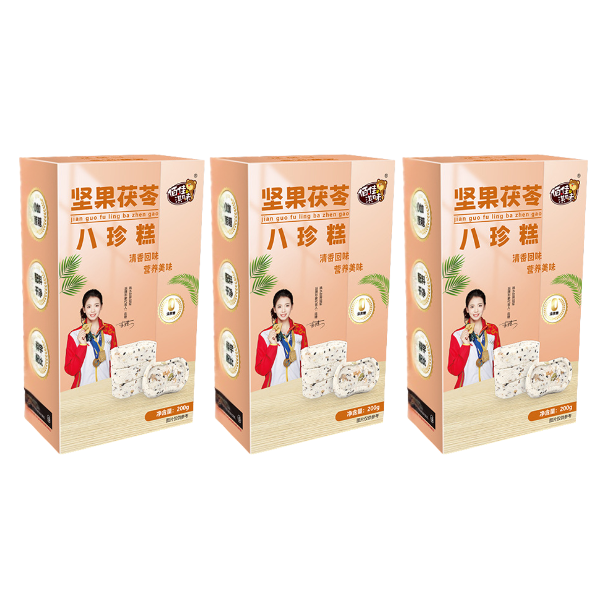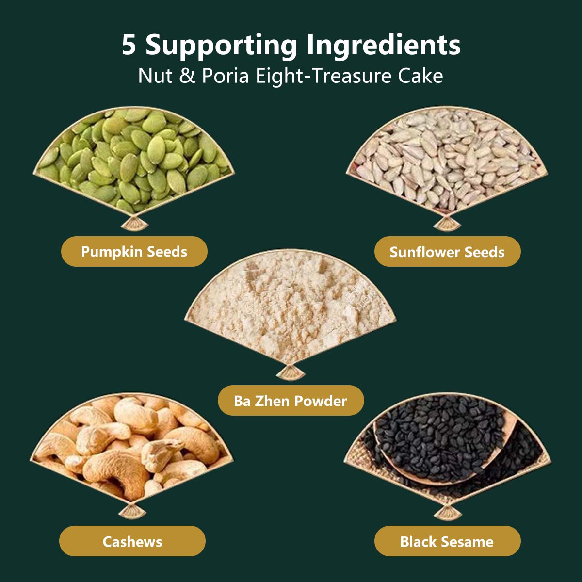 π Ingredients: Cake (Rice Flour, Glutinous Rice Flour), Eight-Treasure Powder 215% (Poria, Cooked Oats, Gorgon Fruit, Dioscorea, Chinese Yam, Lotus Seeds, Coix Seeds, Malt), Maltitol Syrup, Trehalose, Black Sesame, Sunflower Seeds, Crushed Peanuts, Pumpkin Seeds, Cranberry, Edible Vegetable Oil, Drinking Water, Edible Salt, Sorbitol Syrup.