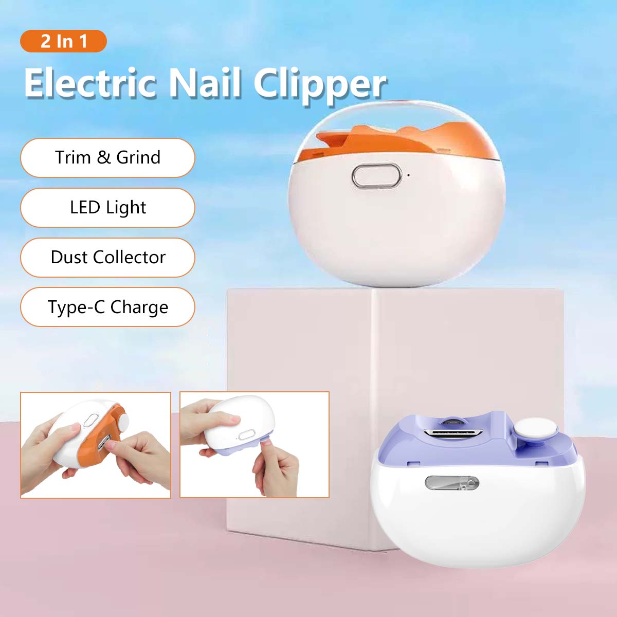 Electric Nail Clipper Trimmer & Polisher LED Light Dual Speed Type-C Rechargeable Multifunction Manicure