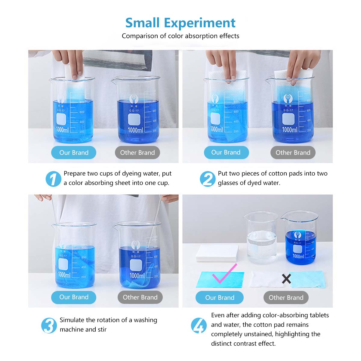 3. The amount of color absorbed by each color-absorbing piece is limited. If the adsorption is saturated and you can see that the cloth is evenly covered with dye, but there is still dye that has fallen off in the water in the washing machine, you need to continue to add this product.