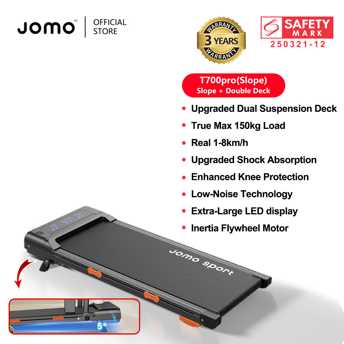 👉 Incline: 5° (single level)