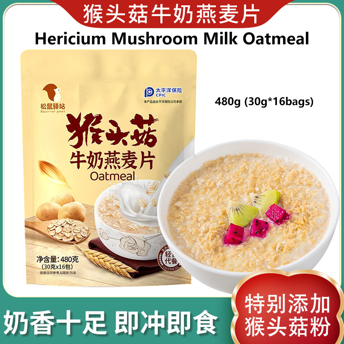 π Ingredients: Oat flakes, compound cereal flakes, mixed grain powder, milk powder, Hericium erinaceus (monkey head mushroom) powder (3%), calcium carbonate