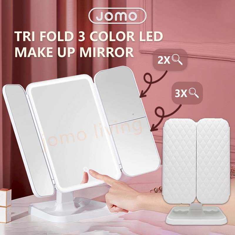 JOMO 2023 New Touch Tri-fold Dimmable LED Makeup Mirror Travel Essentials Cosmetic Magnifying Mirror