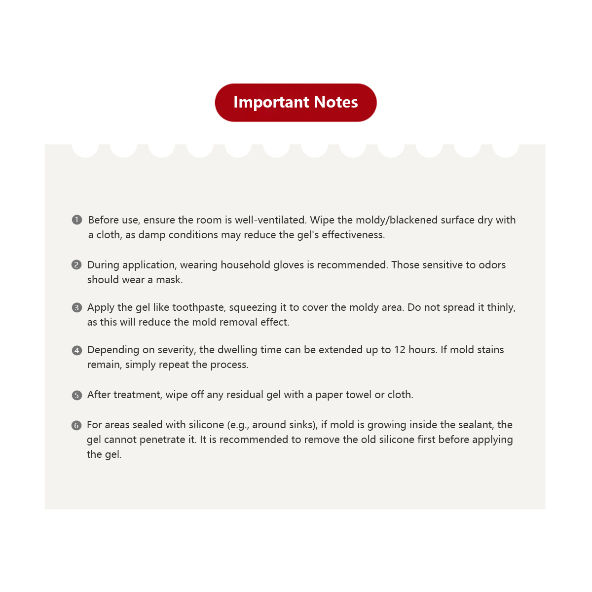 🔹 Ventilation & Surface Prep: Ensure the room is well-ventilated before use. Wipe the moldy surface completely dry, as moisture will reduce the gel's effectiveness.