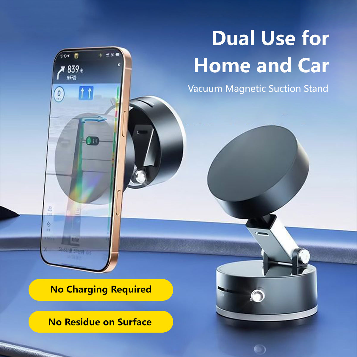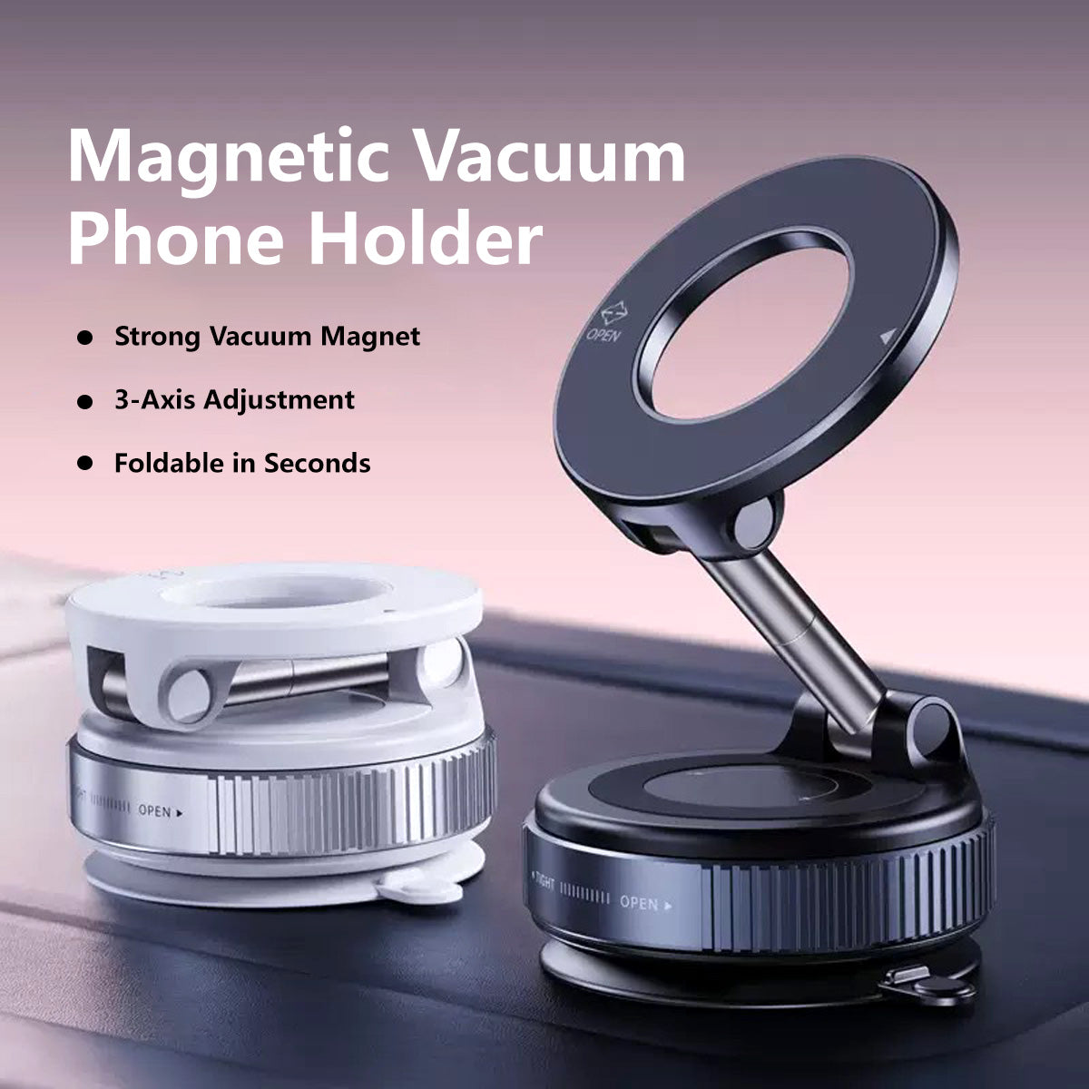 360° Adjustable Magnetic Vacuum Phone Holder Adjustable Angle Foldable Strong Vaccum Magnet Works For Any Surface