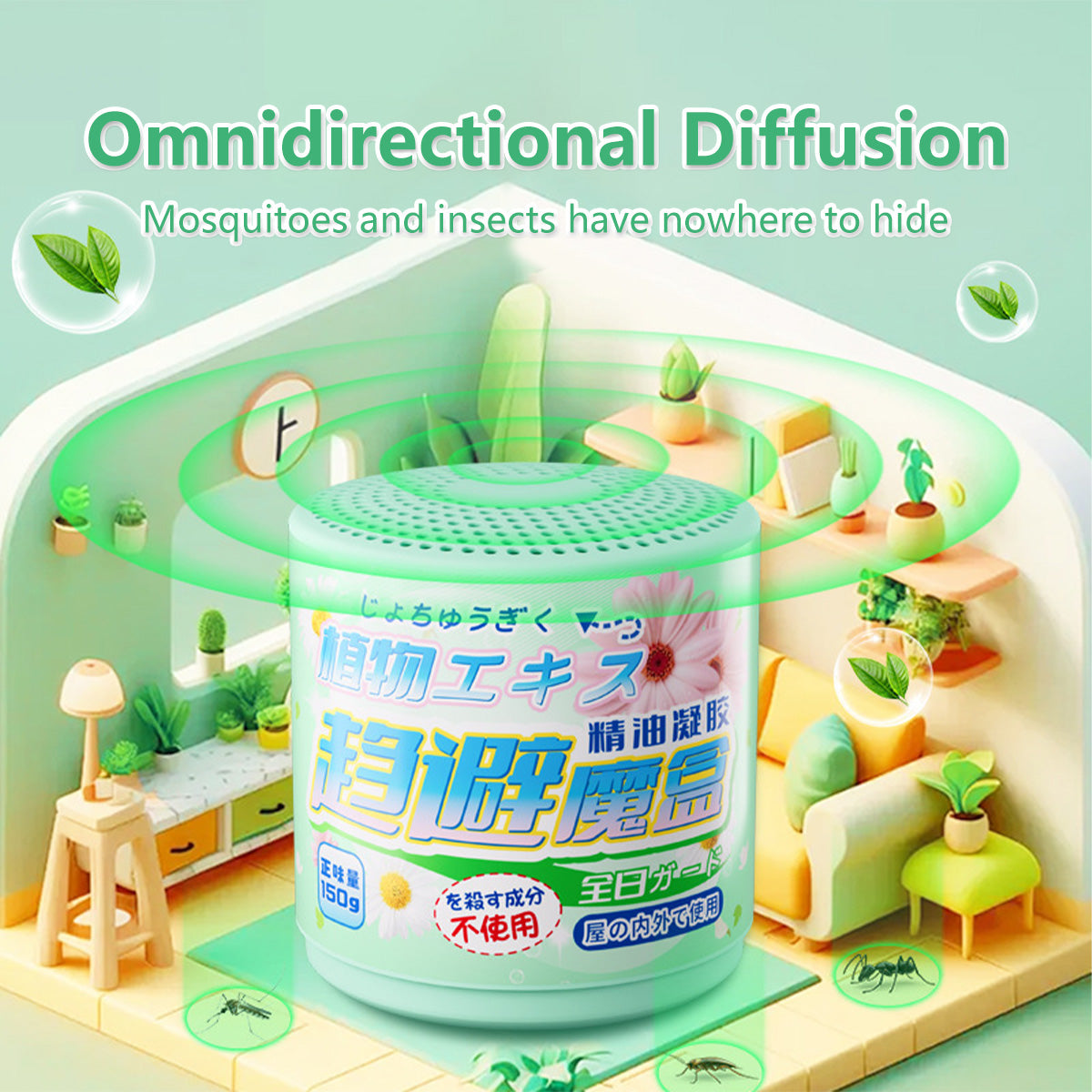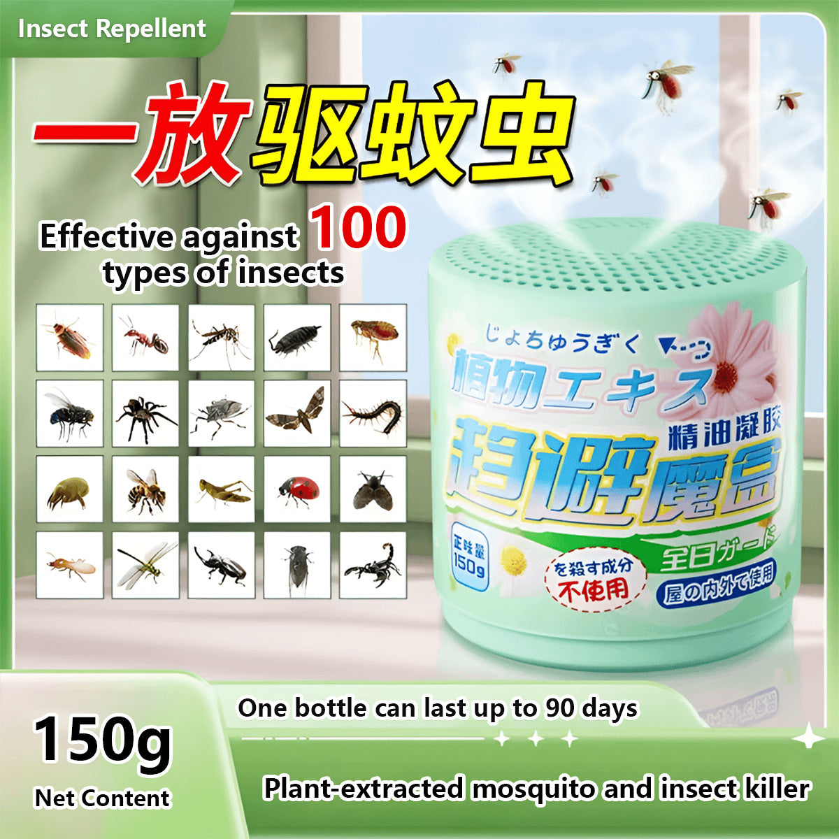 Natural Insect Repellent Gel 90-Day Protection Home, Indoor and Outdoor Safe Plant-Based (150g)