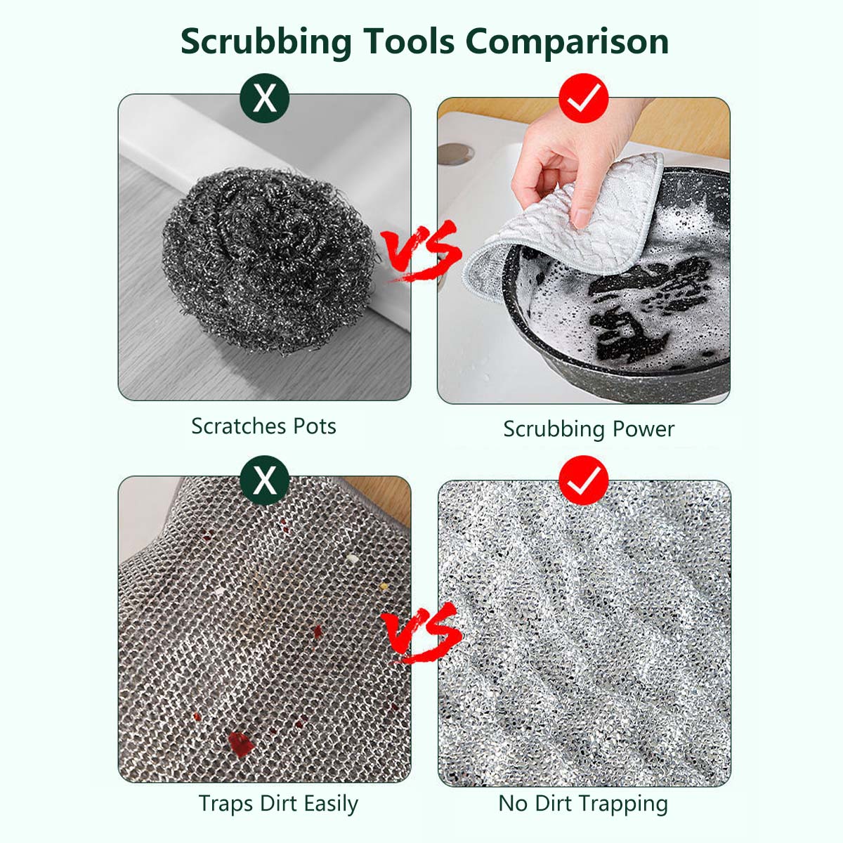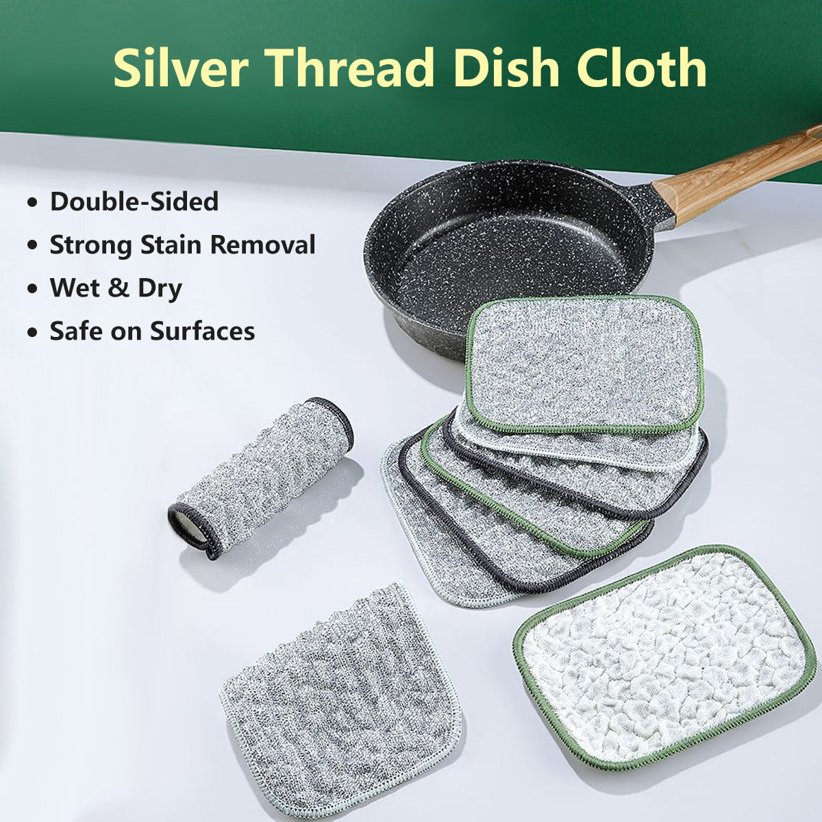 Silver Thread Dish Cloth Double-Sided Strong Stain Removal Safe on Surfaces (10 pieces per pack)
