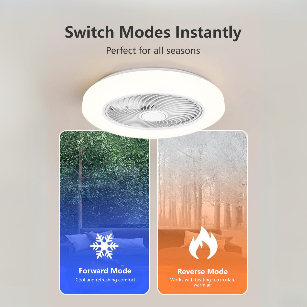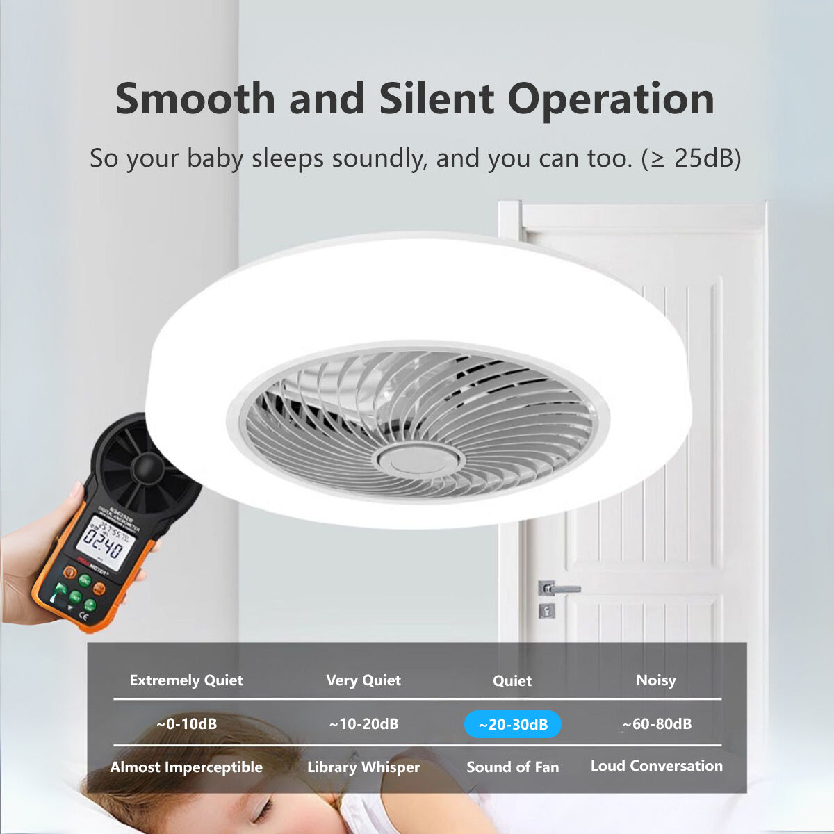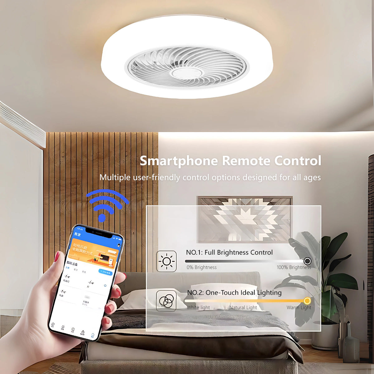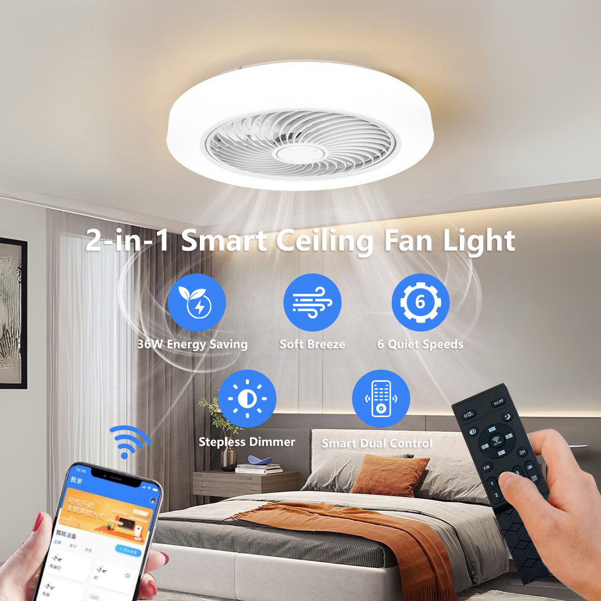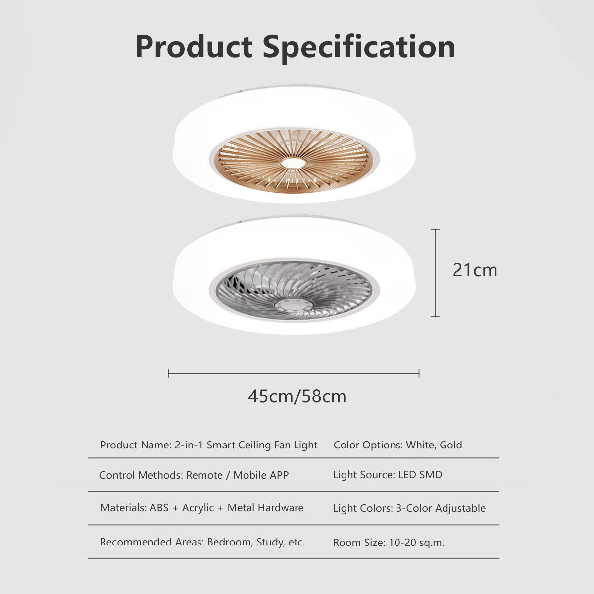 2-in-1 Smart Ceiling Fan Light 45cm - 6 Speed, APP+Remote, 3 Color Lights, Timer for Bedroom