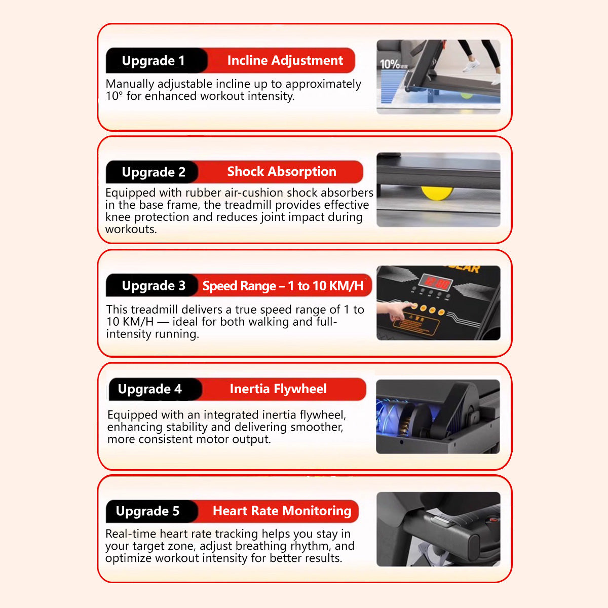 Smart Foldable Treadmill Adjustable Incline, Shock Absorption, Heart Rate & Bluetooth