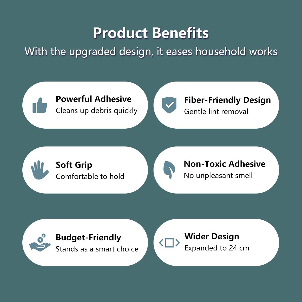 Sticky Lint Roller 24cm Wide Roller Powerful Adhesive Fiber-Friendly Design Budget-Friendly