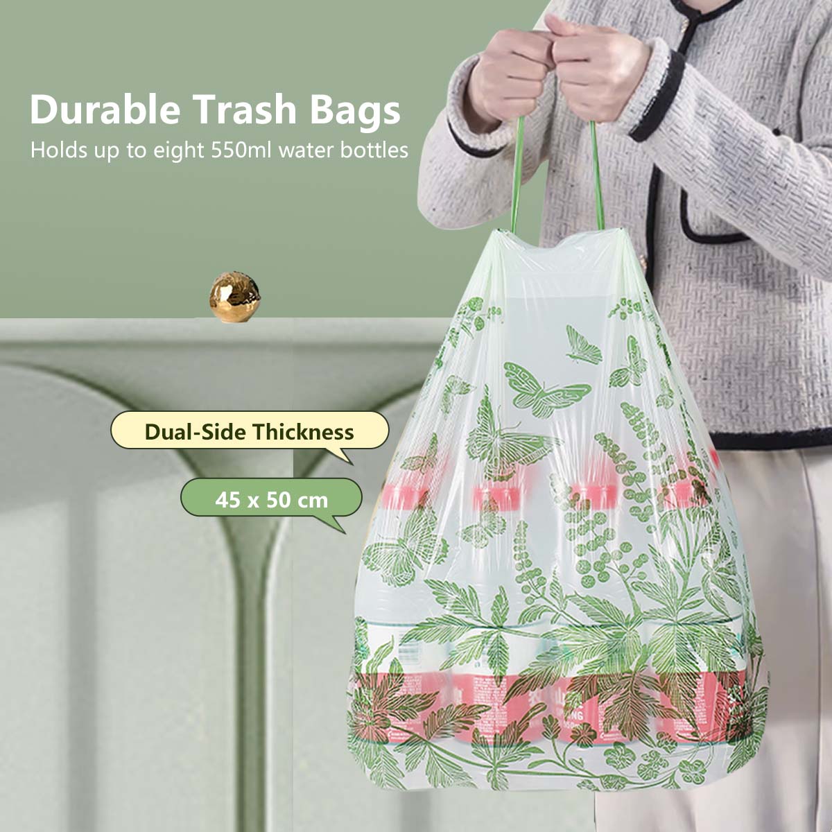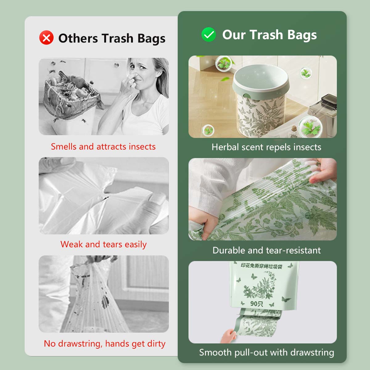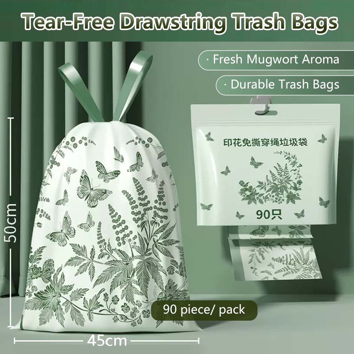 Tear-Free Drawstring Trash Bags Herbal Mugwort Aroma Durable Trash Bags Leak-Proof (90 Pieces / Pack)