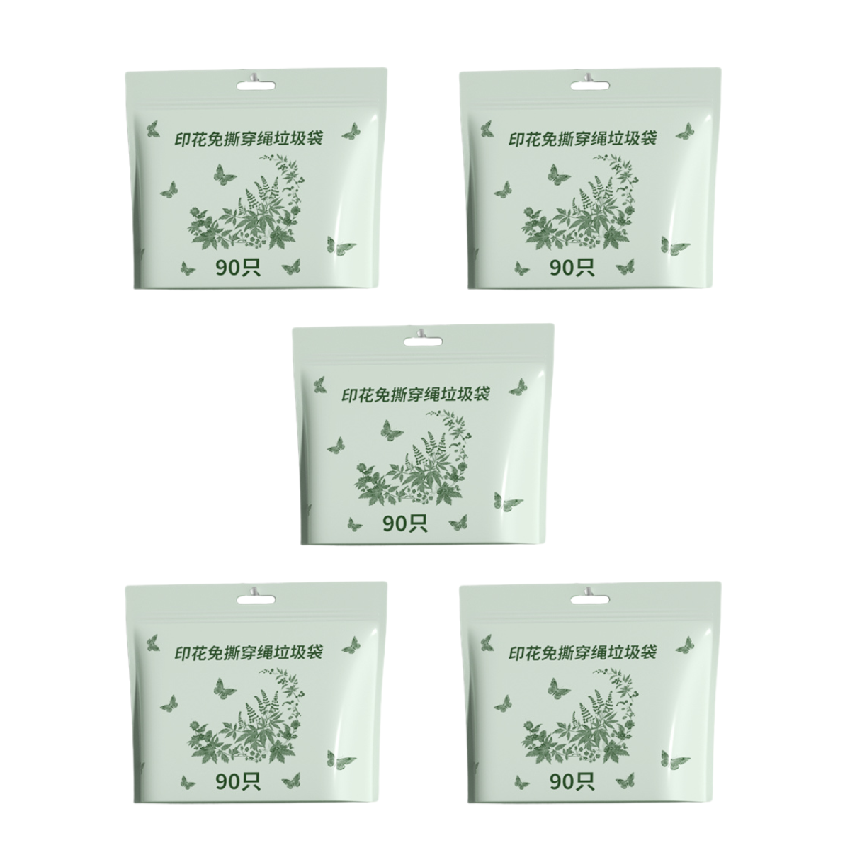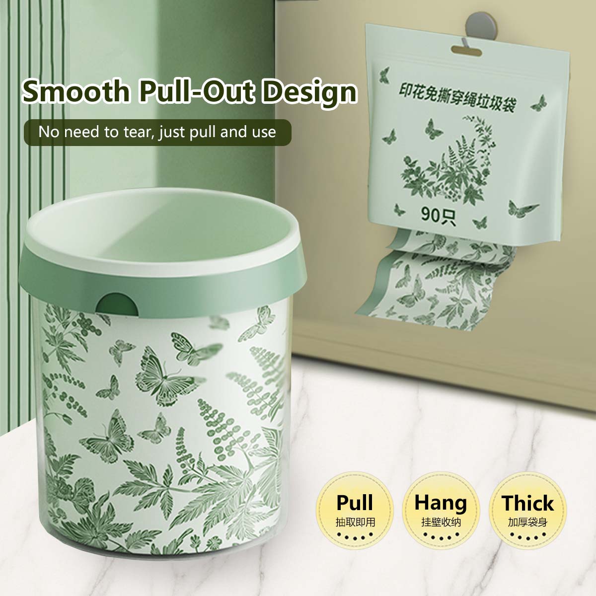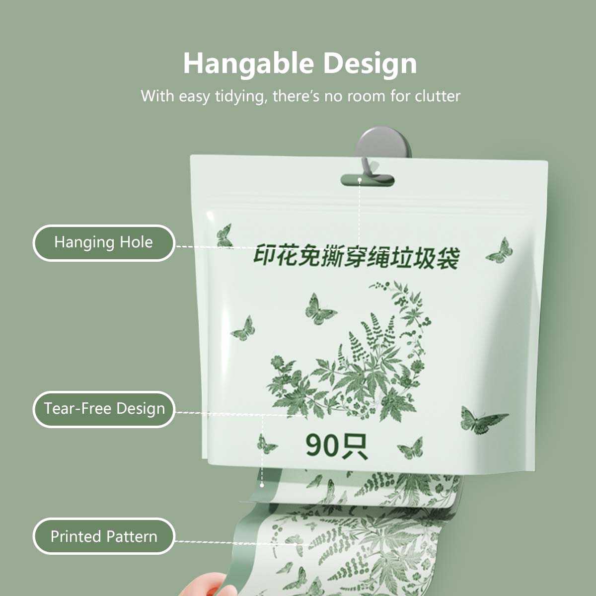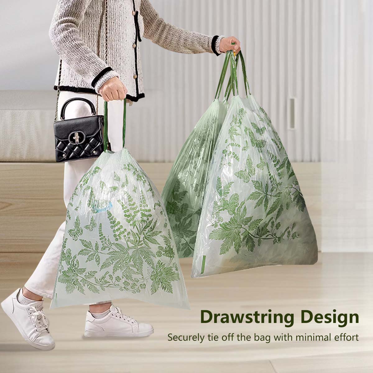 Tear-Free Drawstring Trash Bags Herbal Mugwort Aroma Durable Trash Bags Leak-Proof (90 Pieces / Pack)