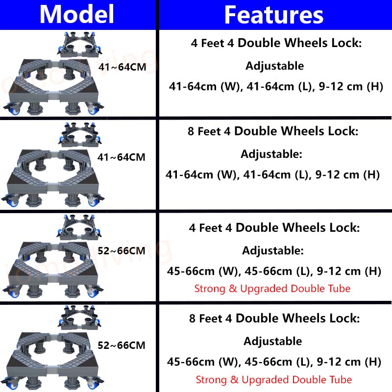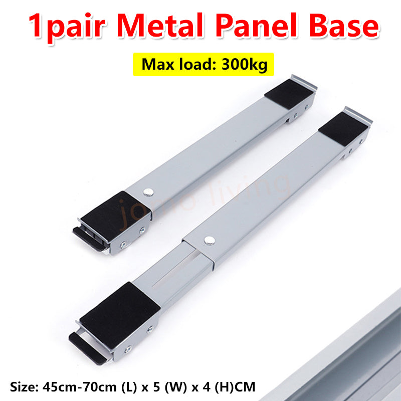 π This washing machine base stand is heavy-duty constructed, adopting stainless steel tube and sturdy plastic panel, with strong load capacity.